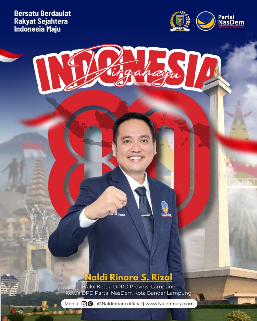Wakil Ketua DPRD Provinsi Lampung Naldi Rinara, mengatakan Indonesia memasuki usianya yang genap ke-80 di tahun ini. Sebagai sebuah bangsa dan negara, usia tersebut masih relatif muda. Meski masih muda, Indonesia sudah melalui beragam ujian yang menguji sendi-sendi kehidupan bernegara, Sabtu (16/08/2025). “Pertanyaan ‘sudahkah kita merdeka?’ akan menghadirkan beragam jawaban dan konsepsi yang kemudian […]