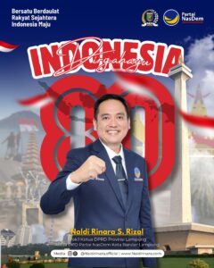 Wakil Ketua DPRD Provinsi Lampung Naldi Rinara, mengatakan Indonesia memasuki usianya yang genap ke-80 di tahun ini. Sebagai sebuah bangsa