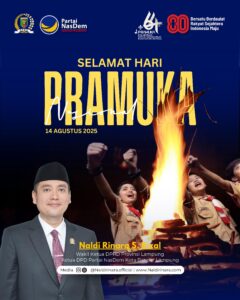Lampung- Wakil Ketua DPRD Provinsi Lampung, Naldi Rinara menyampaikan bahwa peringatan Hari Pramuka ke-64 tahun 2025 mengusung tema “Kolaborasi untuk